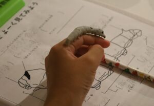 生きている「かいこ」を観察しながら、かいことシルクについて勉強します。