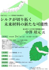 【令和8年 3/1(日)】特別講演会「シルクが切り拓く未来材料の新たな可能性」(講師:東京農工大学科学博物館 館長 中澤 靖元氏)