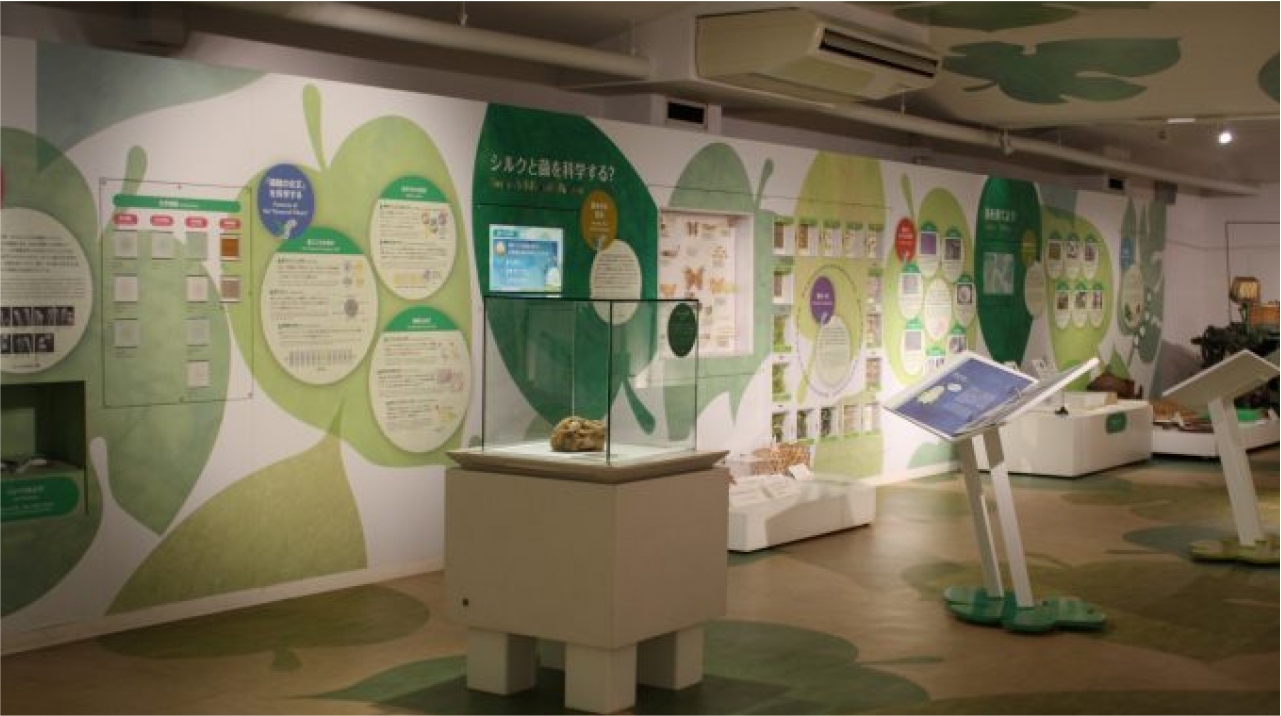 シルク博物館1階では、生きた「かいこ」の観察や、「まゆ」から糸を取る「糸くり」、布を織る「はた織り」などの体験を通じて、シルクの仕組みを楽しく学べます。オリジナルキャラクター「まゆるん」と一緒にクイズに挑戦しながら、シルク製品ができるまでの過程を子どもから大人までわかりやすく体験できます。